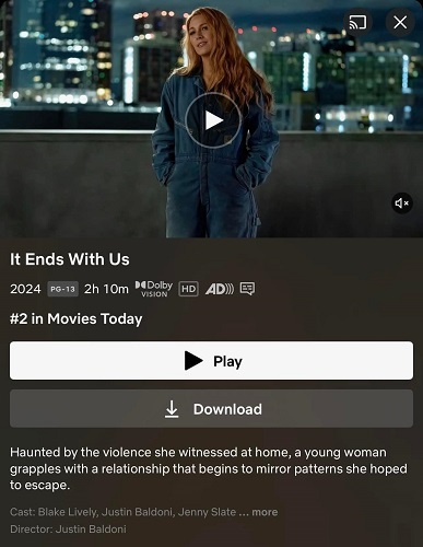 If you’re a Netflix subscriber, the easiest way to download It Ends with Us movie is through the official Netflix app. This allows you to enjoy the movie offline on your mobile devices. However, keep in mind that Netflix downloads are protected by DRM (Digital Rights Management), meaning you can only watch them within the app itself. You also won’t be able to choose the file format like MP4, and the downloads will expire after a certain period.