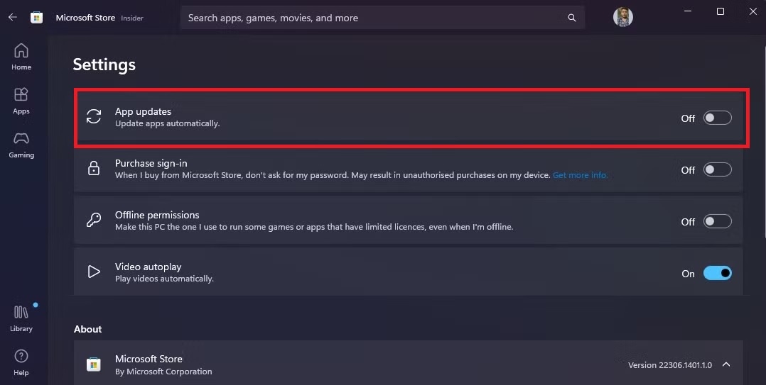 Note: Don’t forget to turn off automatic updates in the Microsoft Store to prevent your downgraded Netflix app from being updated again. You can do this by going to Microsoft Store > Settings > App Updates and toggling off auto-updates.